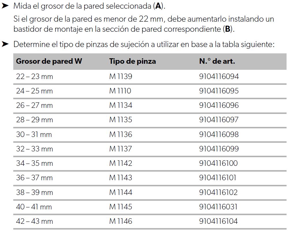 - El artículo incluye un marco interior adecuado para grosores de paredes entre 22 y 43 mm.