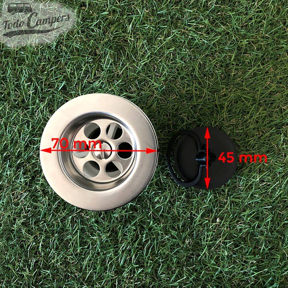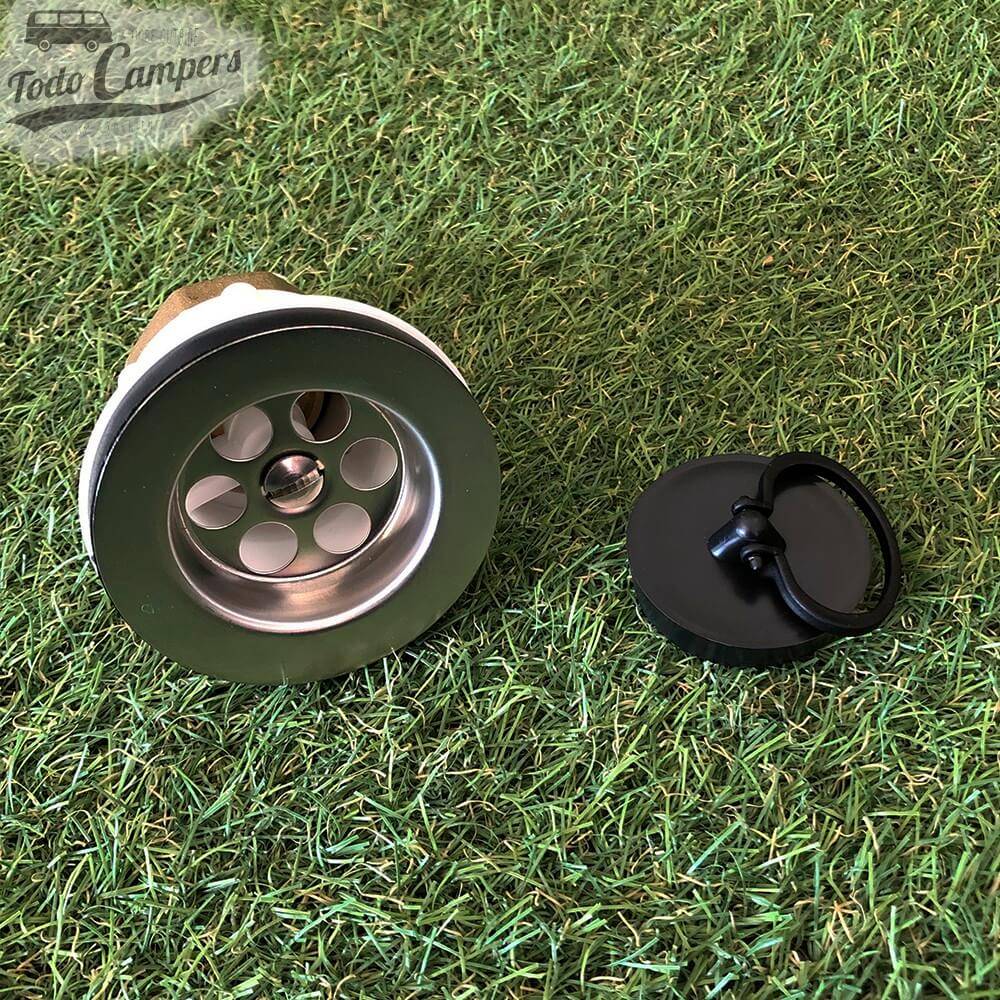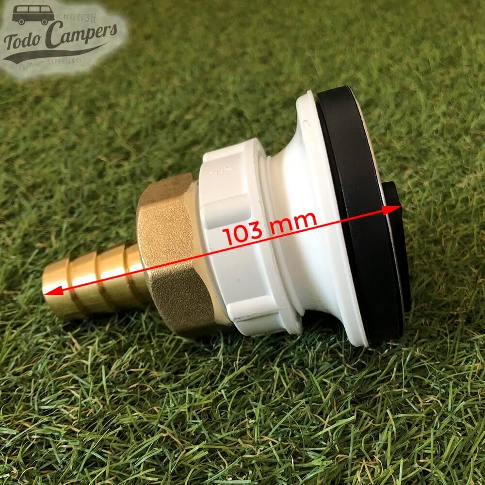 Desagüe con apertura de 1/2" con junta, tapón y conexión de mangueras de 3/4".