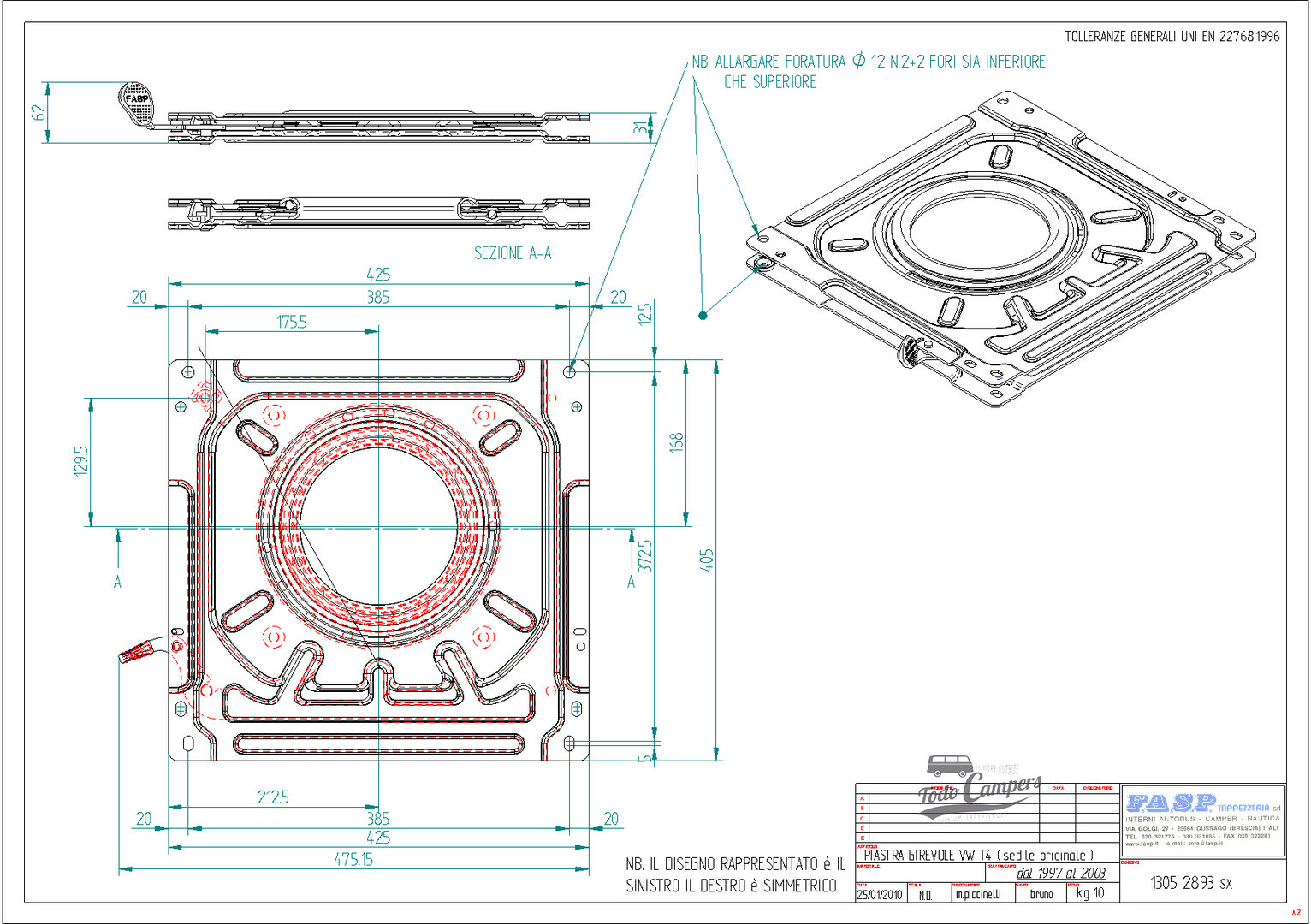 Documentación necesarias para homologar bases giratorias FASP de Volkswagen T4 de 1996 a 2002.