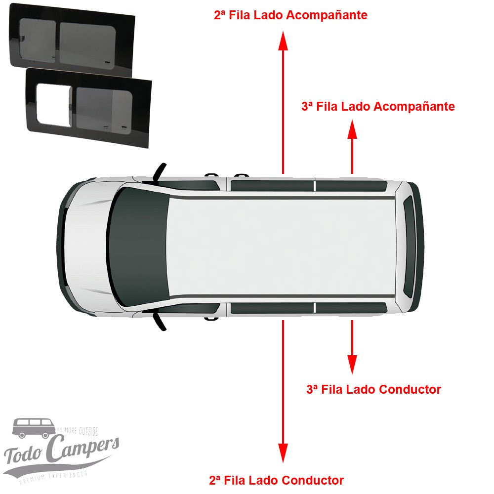 Nota: En Todo Campers llamamos 1ª fila a la del conductor, 2ª fila a la intermedia y 3ª fila a la trasera. Ver esquema.