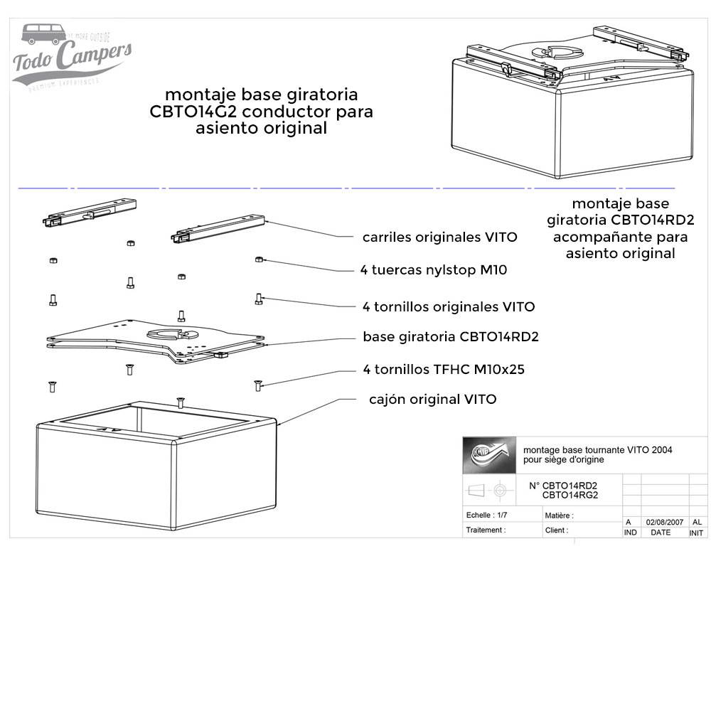 detalle y tornillería de base giratoria acompañante para Mercedes Vito/Viano 2004-2014- Scopema