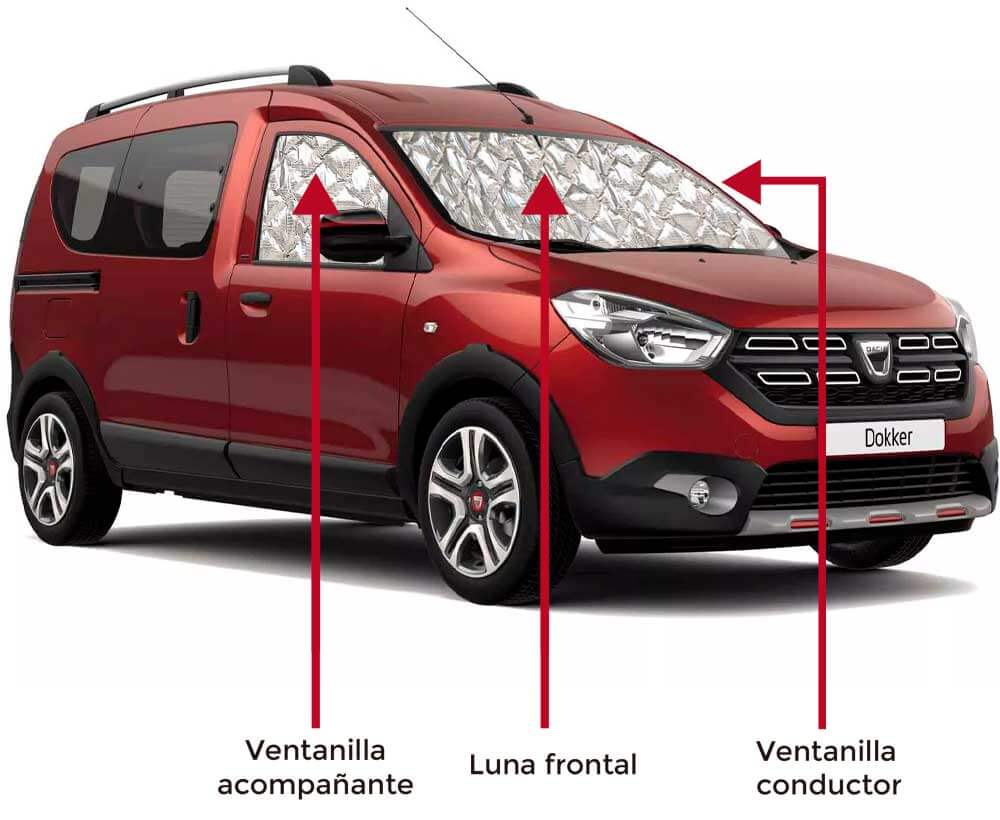 • Interior de los aislantes térmicos de cabina (ventana de conductor y copiloto) para Dacia Dokker