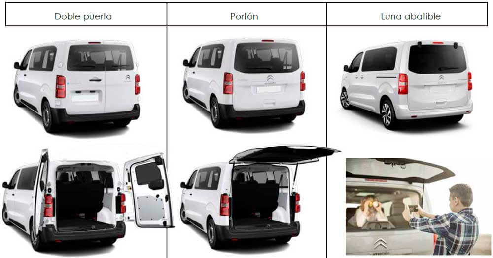 Este chasis de furgoneta tiene 3 tipos de apertura trasera disponible: