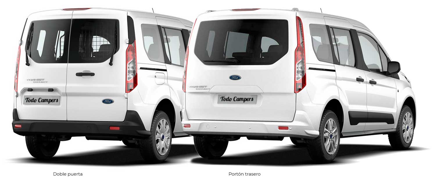 Este chasis de Ford Connect tiene 2 tipos de apertura trasera disponible: