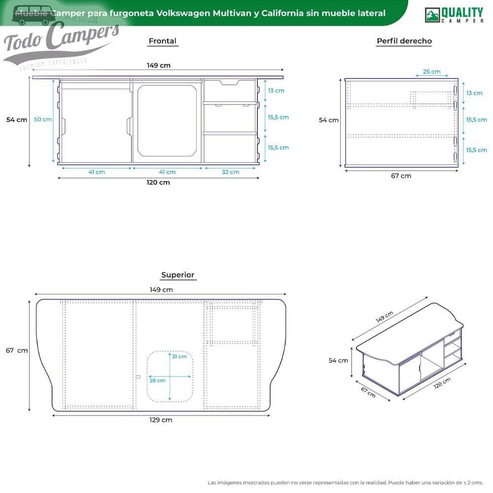 Medidas del Mueble camper autoinstalable para Volkswagen T5, T6 y T6.1