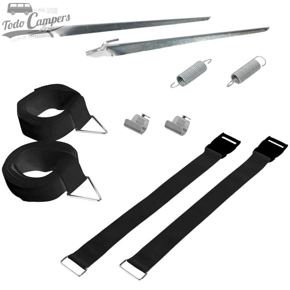 Aumenta la resistencia de tu toldo Fiamma con el kit Tie Down, ideal para viajes y acampadas en cualquier condición climática.