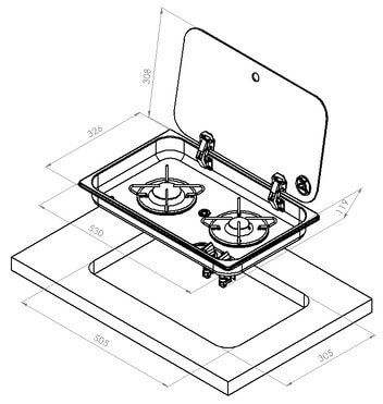 Medidas de la Cocina de gas con tapa de cristal encastrable Carbest - 2 quemadores