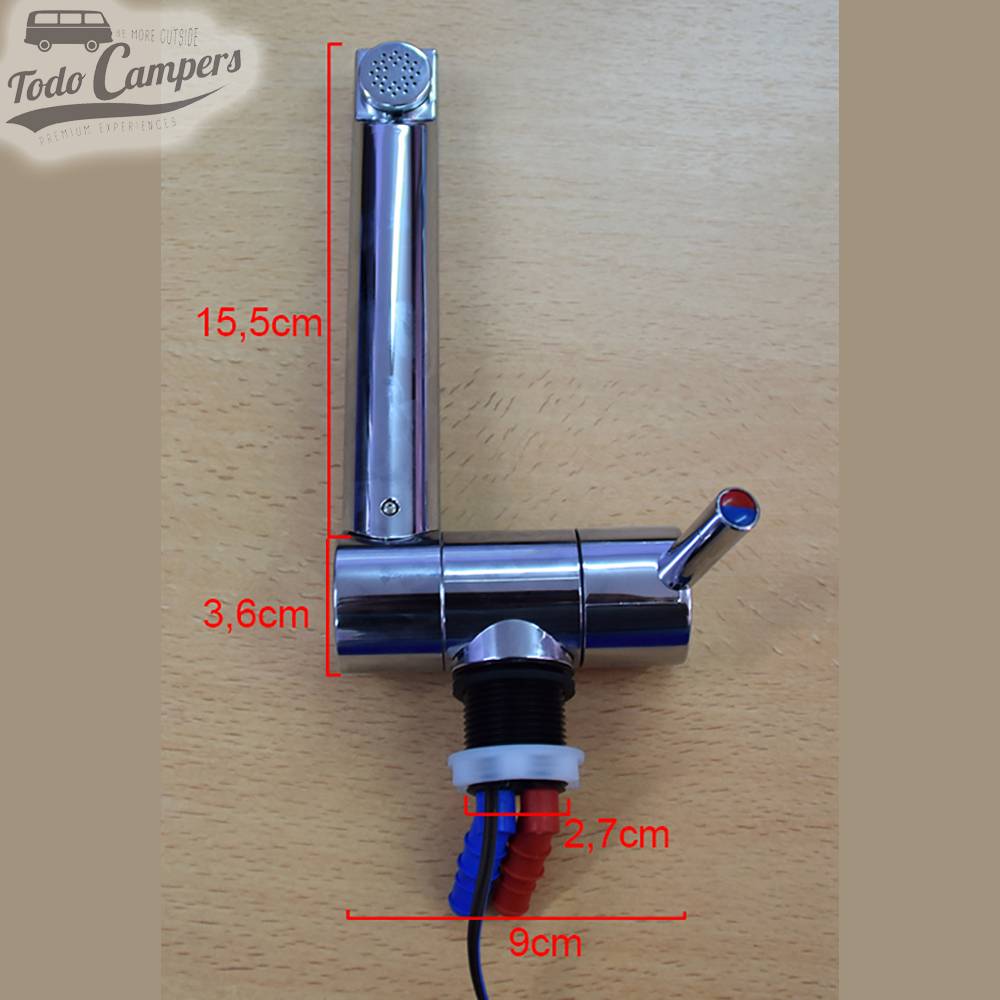 Este grifo es específico para agua fría y caliente. Está fabricado en plástico ABS. Es abatible (girando 180º hacia arriba y abajo y es compatible con los fregaderos con tapa de 4 cm de altura. Puede instalarse en encimeras con un grosor máximo de 30 mm.
