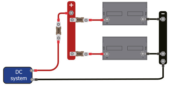 - Conecta un máximo de 4 baterías de 12,8 V en serie para obtener un sistema de alimentación de 48 V como máximo.