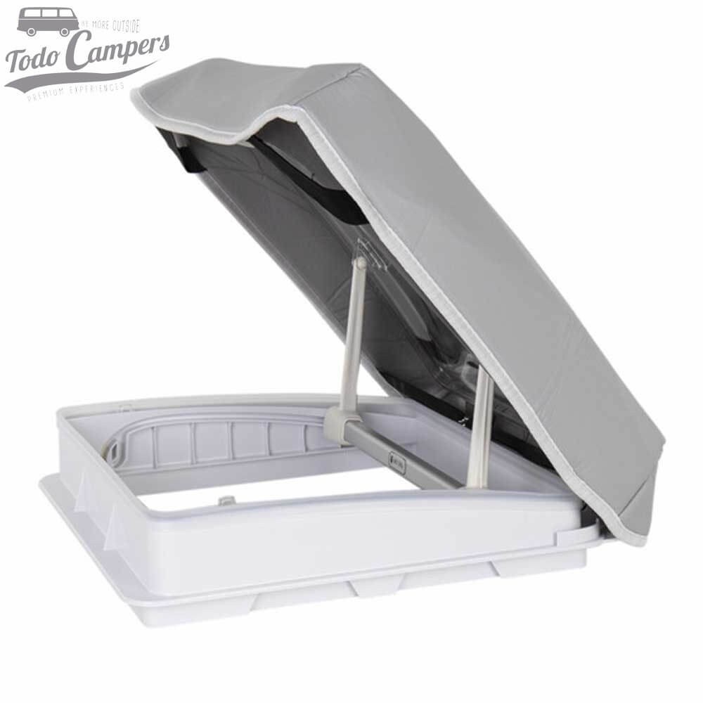 Claraboya Aerodynamic Carbest blanca con mosquitera, oscurecedor y cúpula ahumada de 40x40 cm