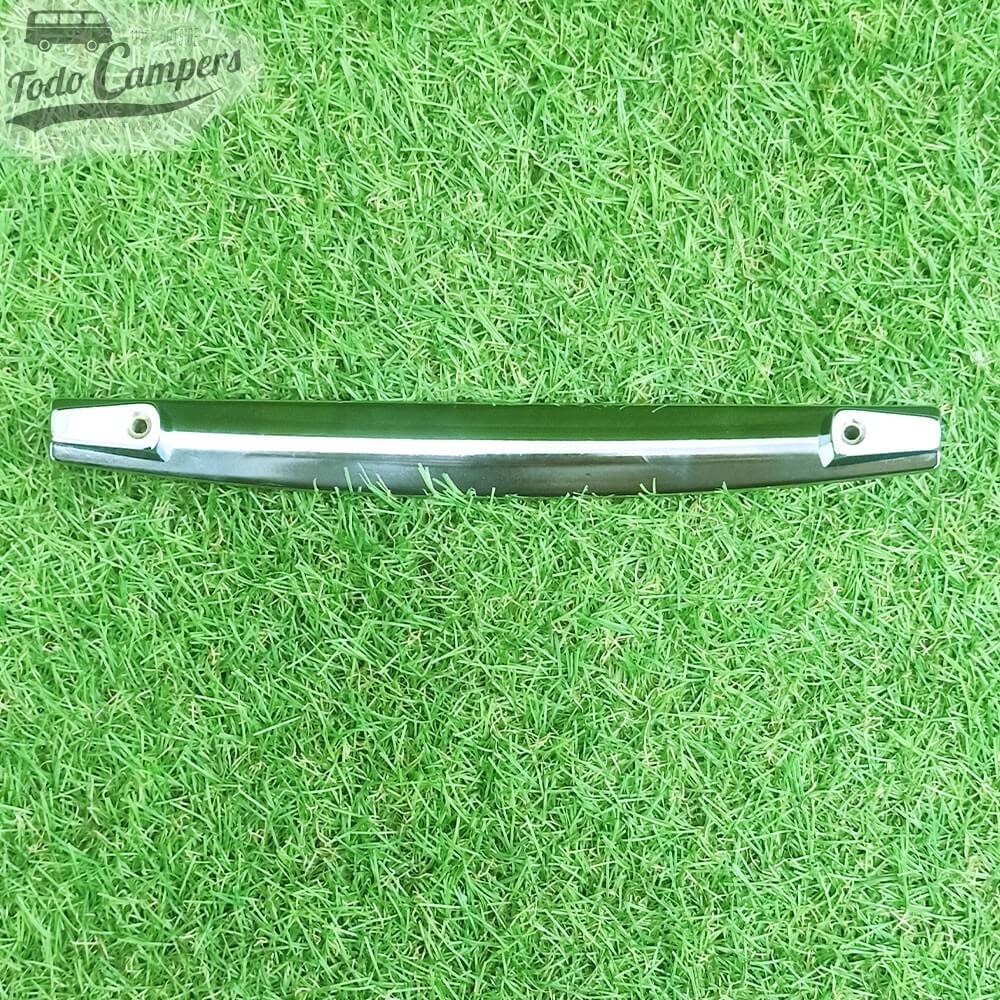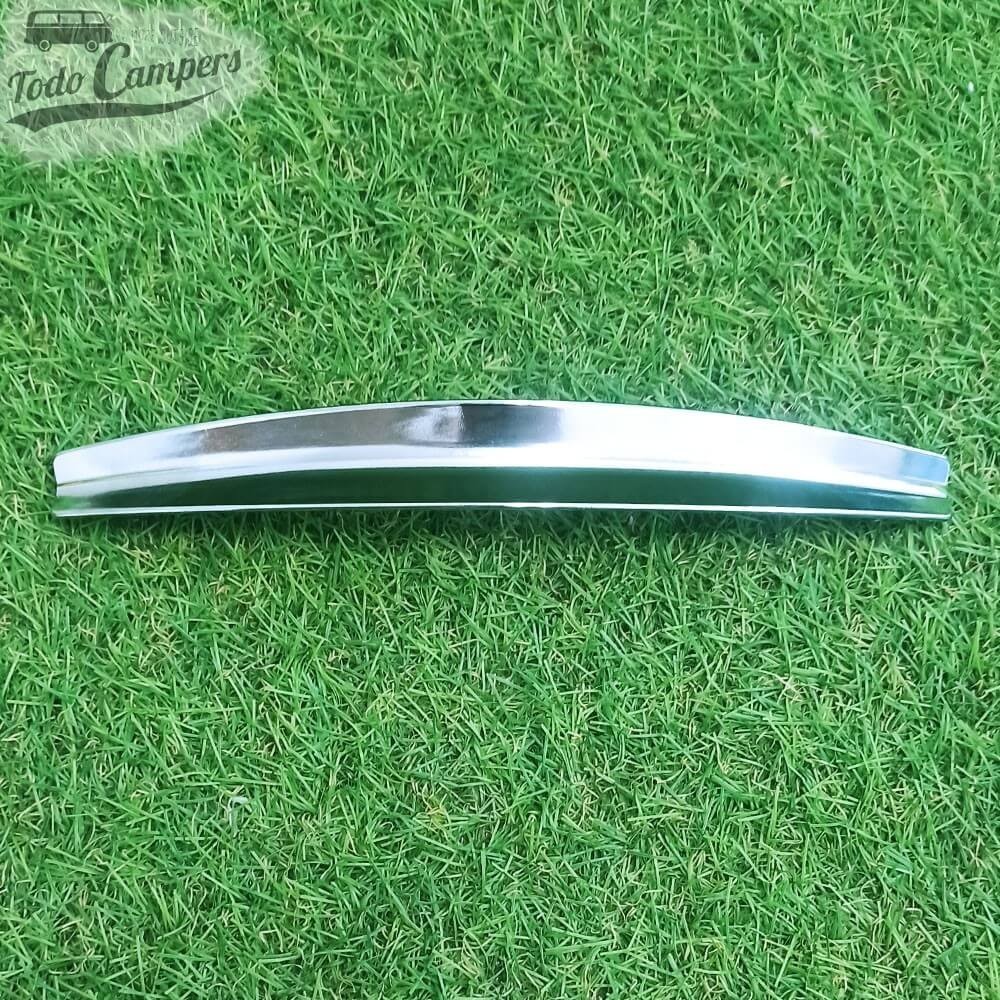 Tirador metálico hecho de Zamak en un acabado color cromo brillante. Tiene una bonita línea central que vista de perfil tiene forma de V. Simula la nervadura de una hoja.