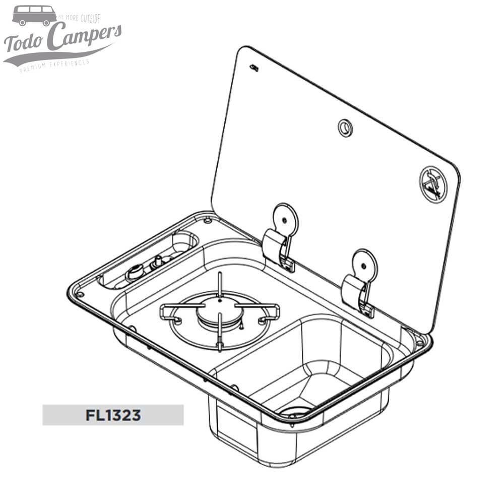 Ahora podrás tener una cocina completa con fregadero incluso en espacios muy reducidos. El modelo FL 1324 es ideal para furgonetas pequeñas o medianas con poco espacio. Podrás elegir entre los dos modelos existentes: con la pileta o seno en el lado derecho o en el lado izquierdo.