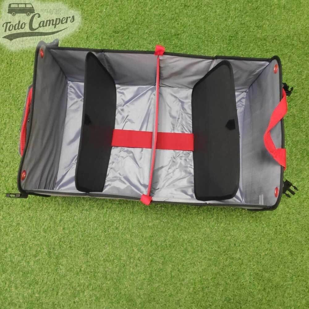 Fabricado con materiales resistentes y ligeros, el Organizer Box destaca por su diseño plegable, que facilita su almacenamiento cuando no está en uso. Sus dos amplios compartimentos interiores permiten una clasificación eficiente de objetos, desde utensilios de cocina hasta herramientas o accesorios personales. Además, incluye dos asas reforzadas para facilitar su transporte.