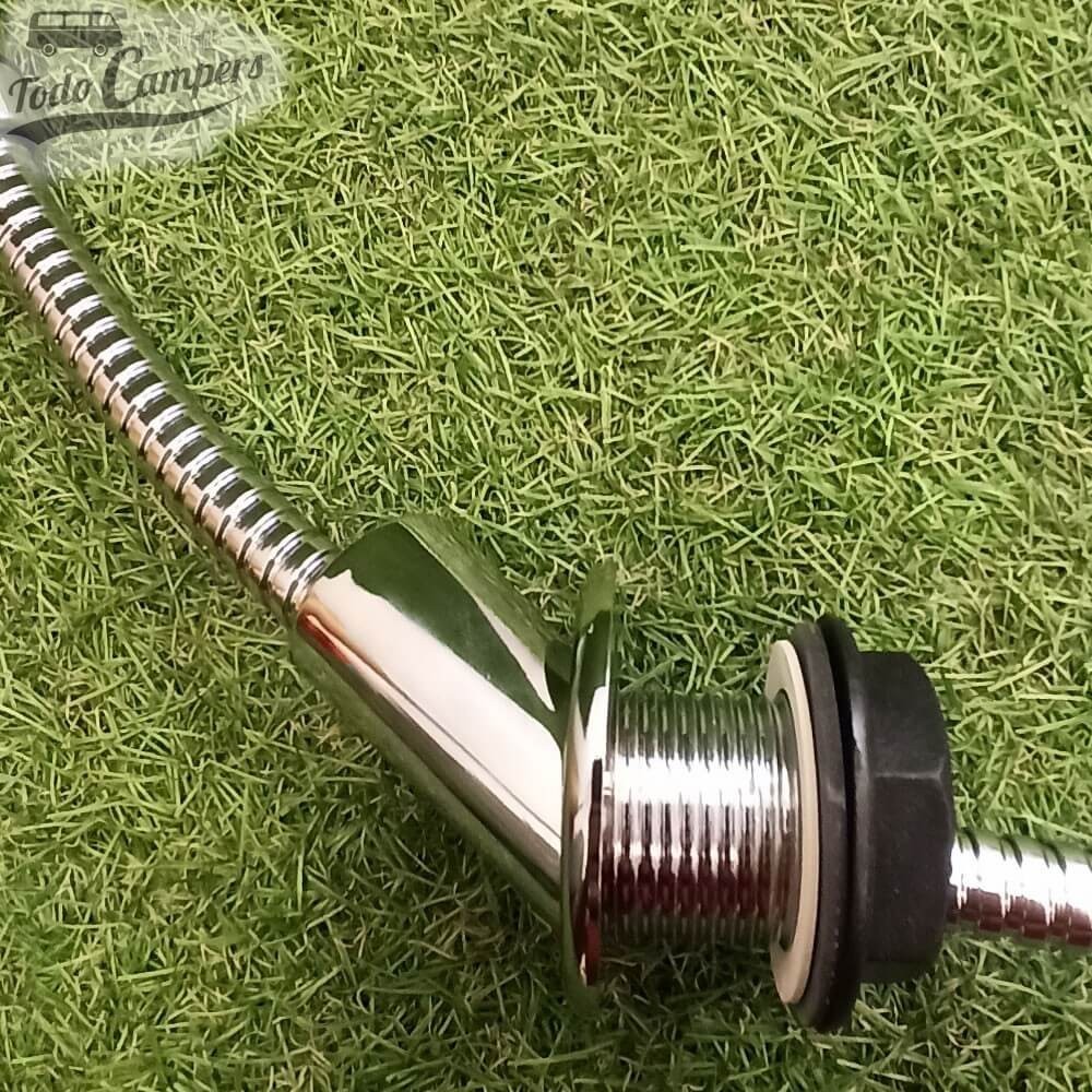 • Flexo de ducha articulado metálico de 1,5 metros. La entrada de agua de la manguera tiene una rosca de 3/8" para que puedas usarlo con los mandos bajoencimera de esa métrica. Es compatible son otros soportes (ejemplo: Con el soporte Comet Stilo podrás colocar la alcachofa  más alta en posición ducha). Lleva gomas estancas en su interior para evitar cualquier tipo de fuga de agua.