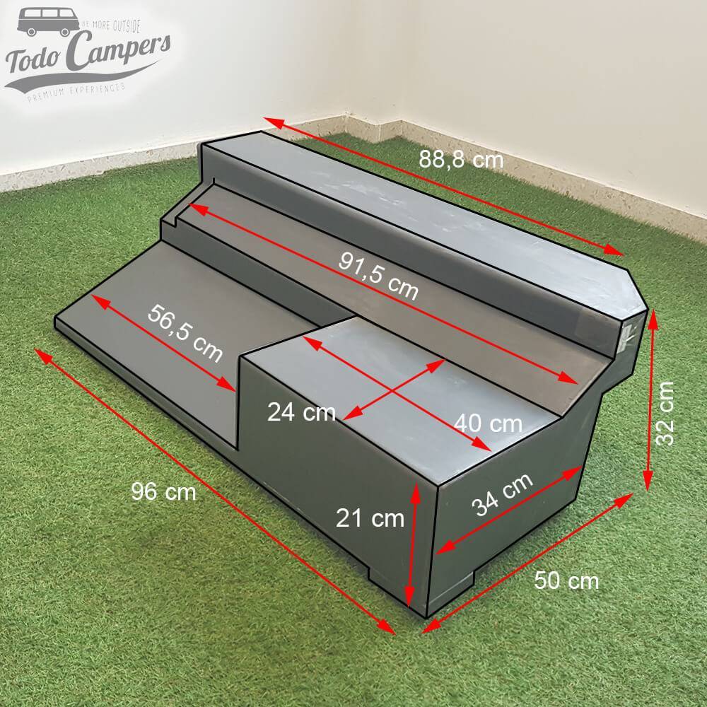 Medidas Depósito de agua 80L para Ducato, Jumper y Boxer 1994-2006. Depósito de aguas limpias y grises para tu furgoneta