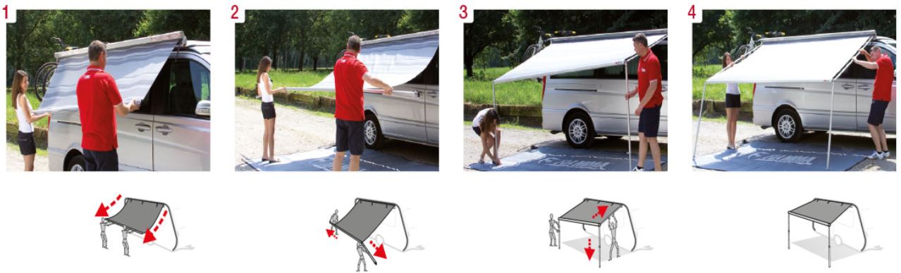 Si duermes mucho en cualquier sitio, pero a la vez te gusta entrar de cuando en cuando en un camping para relajarte o ducharte más tranquilo, este es el toldo para furgoneta ideal. Levanta poco la altura en tu furgoneta (nada si tienes una T4). Se desenrolla manualmente, se abren las patas y listo. A disfrutar!