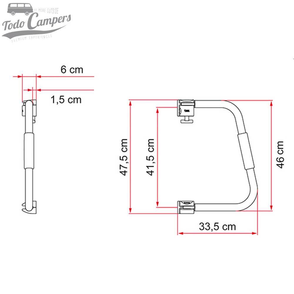 Asa de seguridad Security 46 de Fiamma, fabricada en aluminio lacado de Ø 30 mm y 2 mm de espesor, color blanco. Ideal para una protección antirrobo extra en nuestra caravana o autocaravana y un agarre para subir y/o bajar más cómodamente del vehículo.