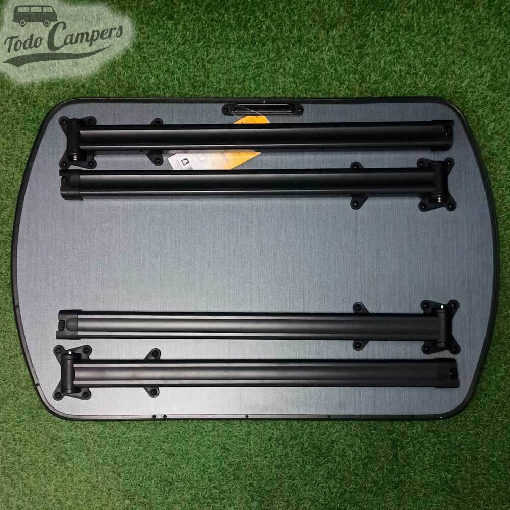 Mesa de camping plegable que ocupa poco espacio cerrada