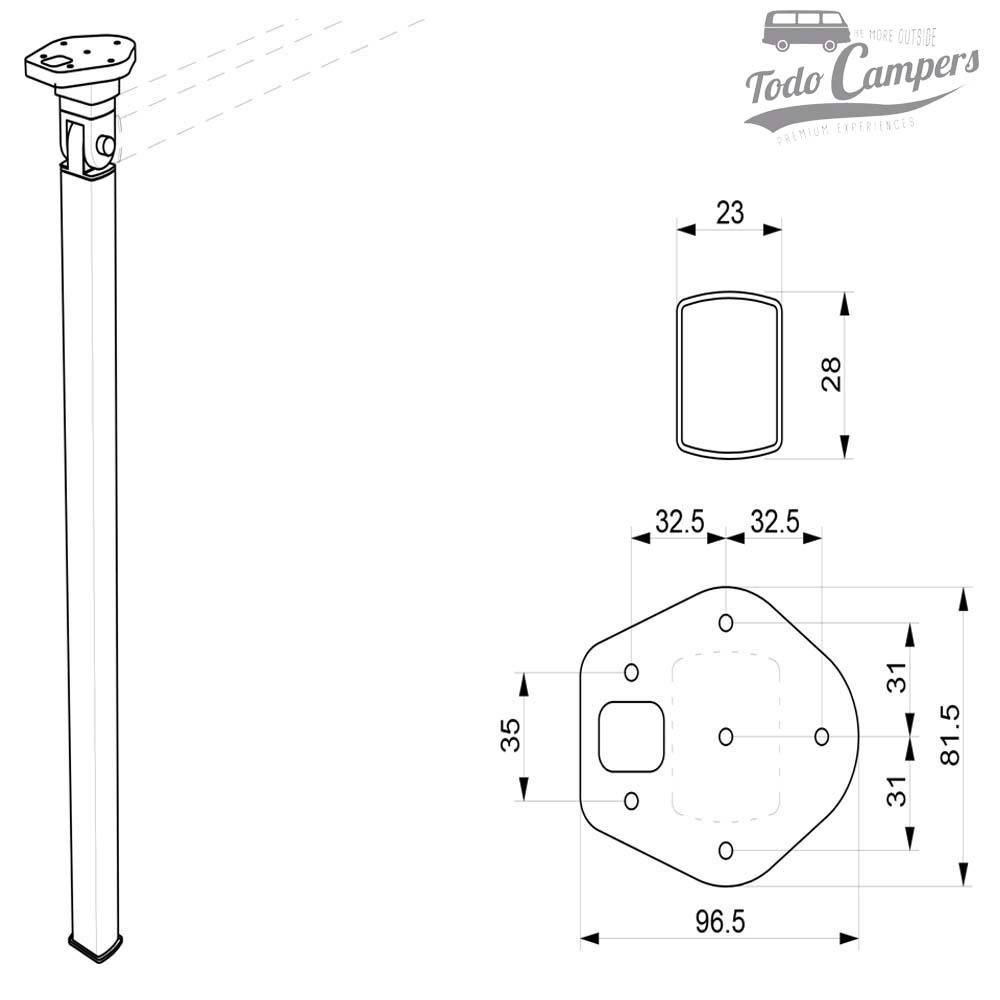 Medidas de las fijaciones de la pata plegable para mesa abatible camper