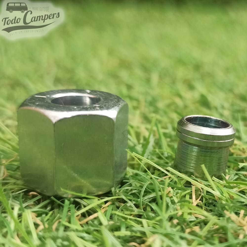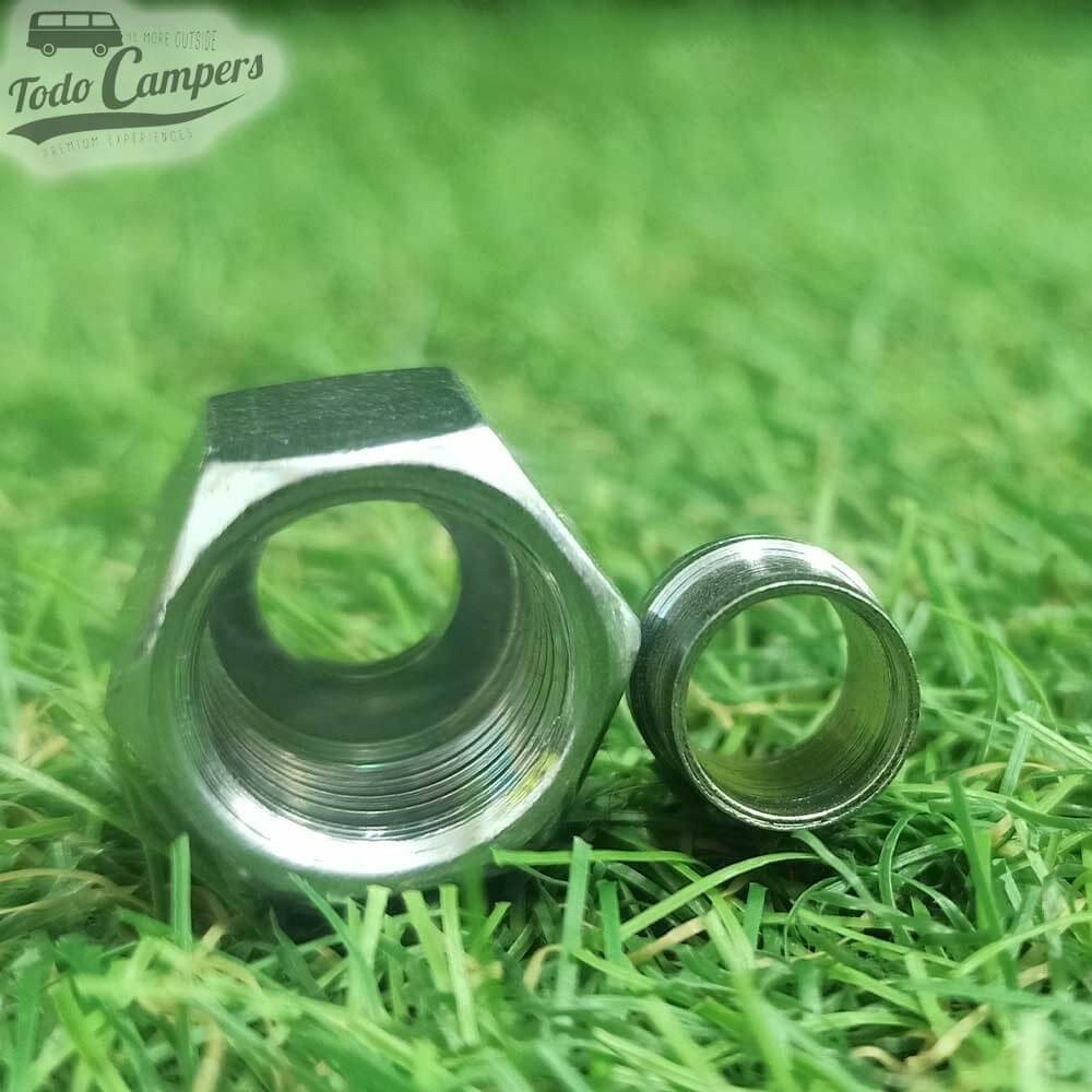 Este método de compressão garante uma conexão segura entre o tubo de cobre e o conector Ermeto, o que é fundamental para a segurança e o bom funcionamento do sistema de gás na campervan ou autocaravana.