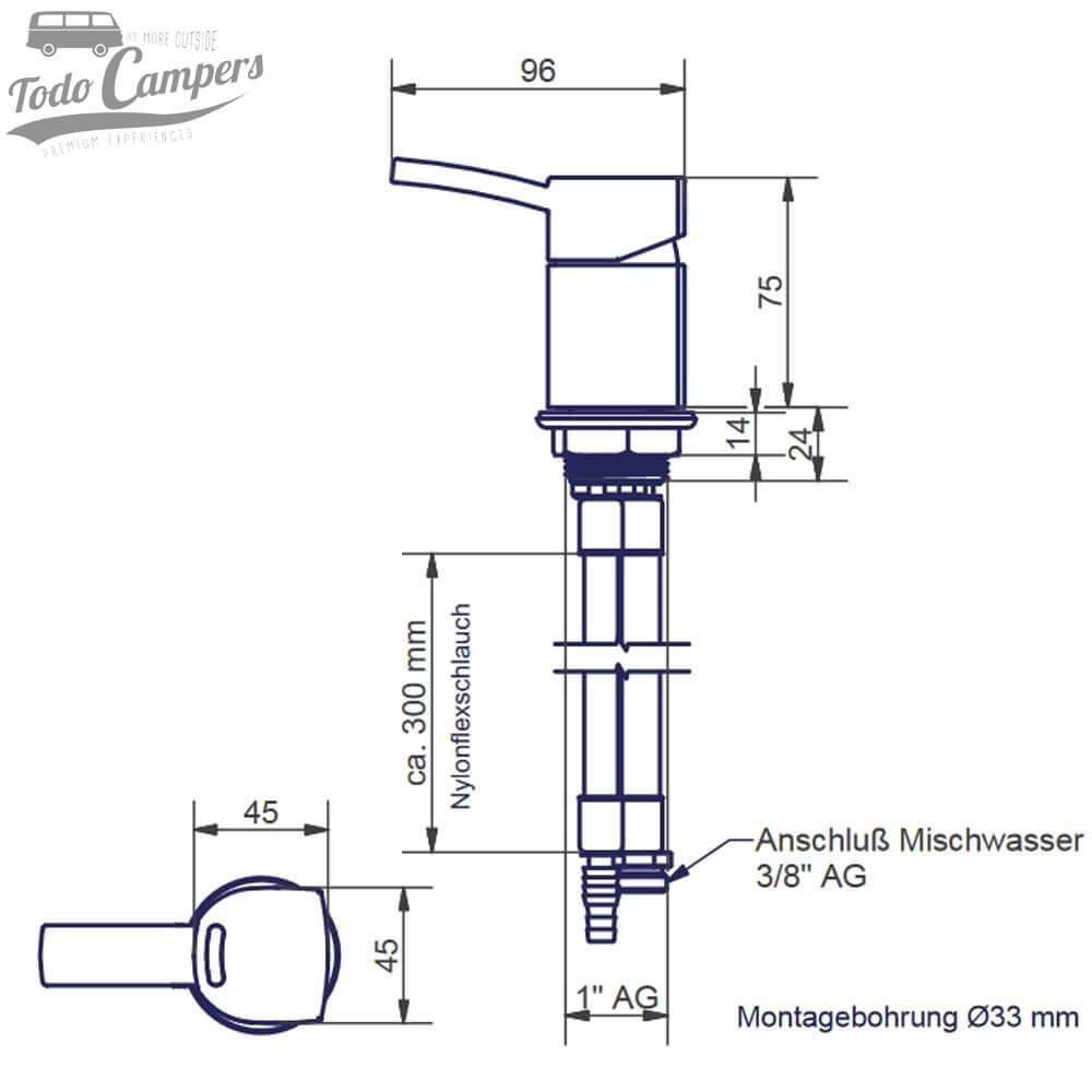 • Cor. Este é um aspeto puramente estético, mas muitas torneiras estão disponíveis em várias cores para combinar melhor com os acabamentos da sua autocaravana.