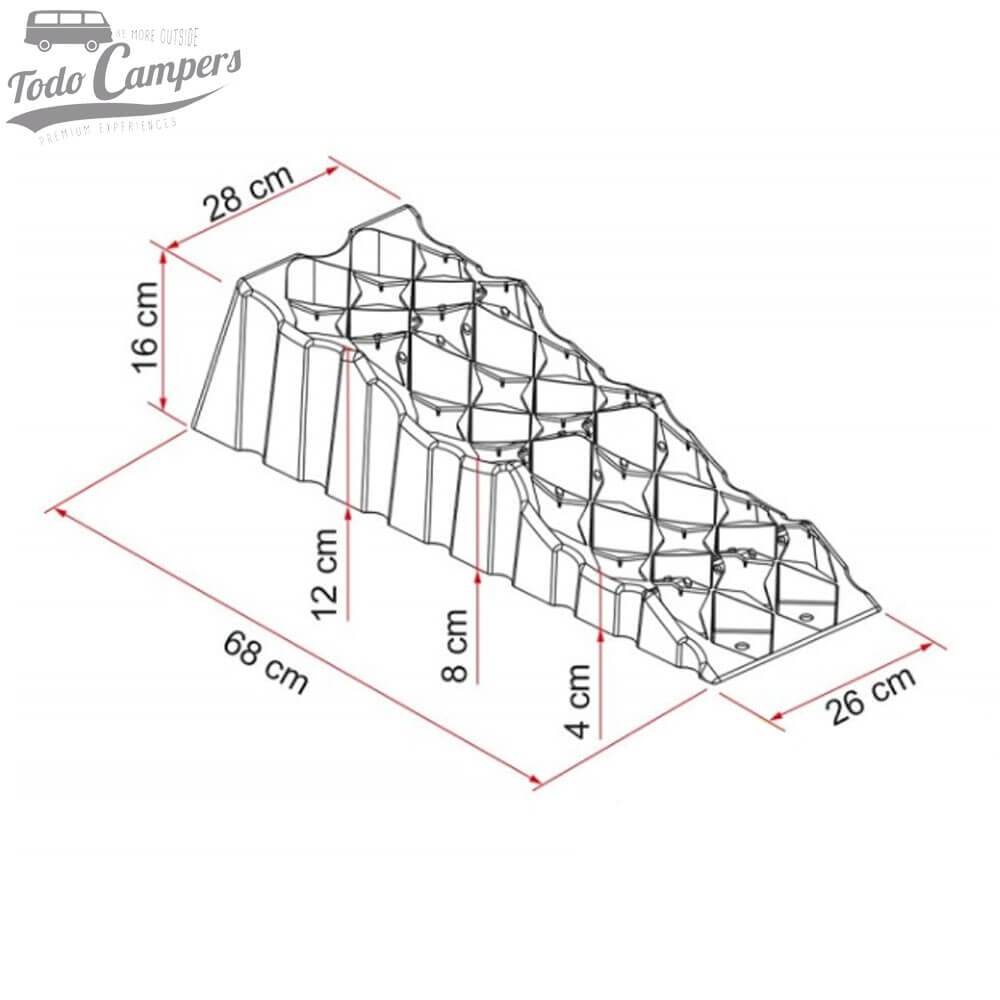 Este modelo, Level Up Premium S, é especialmente cómodo devido ao seu tamanho. Os seus níveis ajudam ainda a nivelar a carrinha, já que é possível que esteja desnivelada não apenas à frente / atrás, mas também à esquerda / direita, e pode ser que tenha que calçar uma roda mais que a outra.