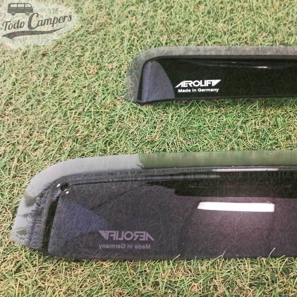 Os nossos defletores oferecem uma proteção ideal contra correntes de ar e chuva. Permitem que se abram ligeiramente as janelas dianteiras a qualquer momento e se produza um agradável e constante intercâmbio de ar no interior do veículo. Sobretudo com tempo chuvoso, manter as janelas ligeiramente abertas evita o perigo de que os vidros se embaciem.