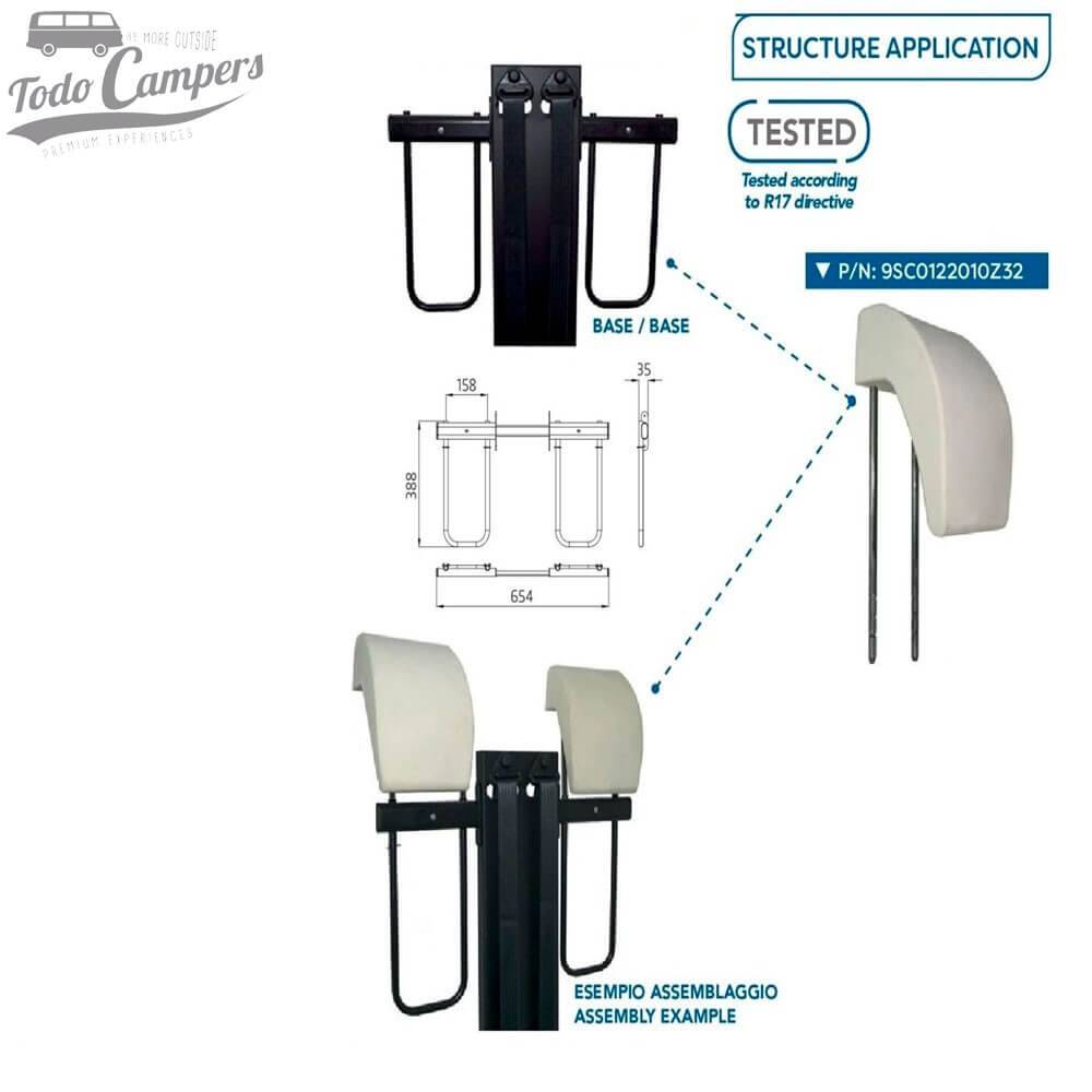 Se precisar de acrescentar os apoios de cabeça à sua estrutura de assentos dupla CTA, aqui encontrará este Kit de 2 encostos reguláveis em altura.
