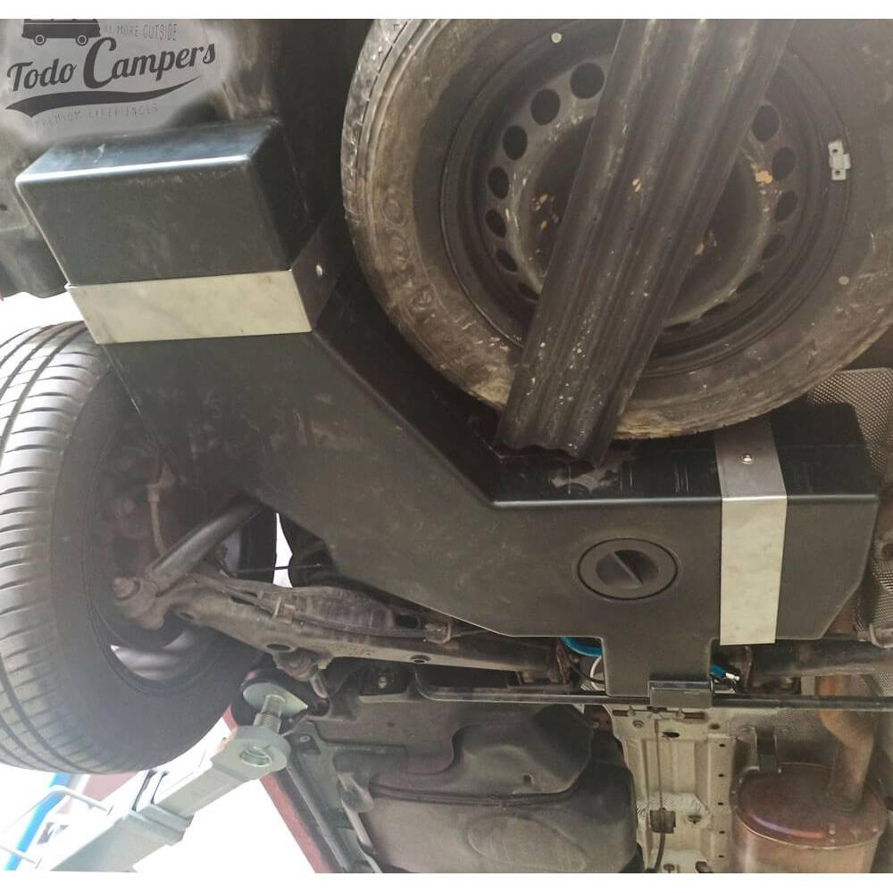 Esquema do depósito de água de T5 ou T6 concebido para colocar no exterior do veículo, à frente da roda suplente.