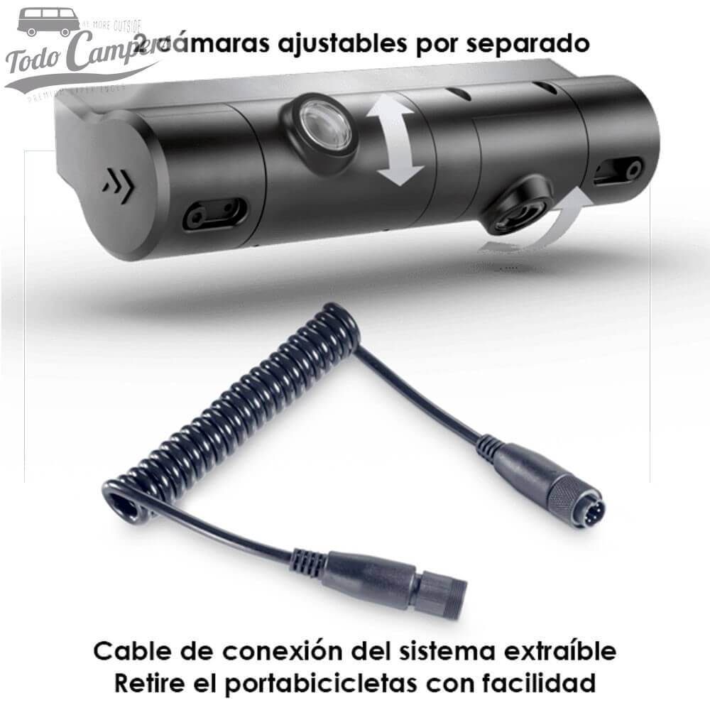 Com esta câmara traseira para porta-bicicletas poderá conduzir de maneira segura, já que conseguirá uma melhor visão da parte traseira da carrinha ou autocaravana. Coloca-se no suporte para bicicletas graças a um novo sistema patenteado de encaixe nas calhas do suporte.