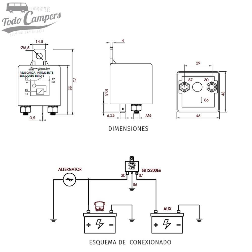 Ao trabalhar por tensão, este relé pode-se instalar em qualquer tipo de bateria (cumbo, lítio, etc.). Variará a intensidade de carga segundo o estado de descarga da bateria. Homologado segundo o regulamento R10.