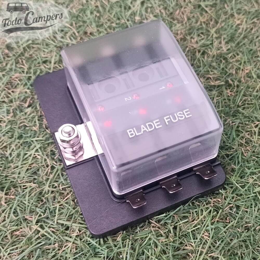 Pode escolher a caixa porta-fusíveis que melhor se adapte à sua instalação. Esta caixa está desenhada para albergar 6 fusíveis, cada um dos quais protegerá um circuito elétrico específico.