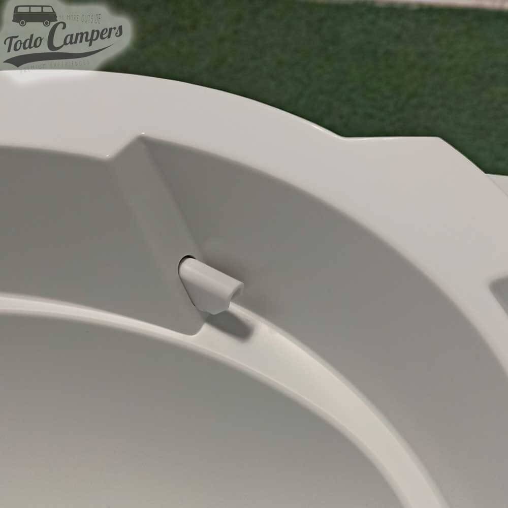 Esta sanita química fixa é uma das mais confortáveis do mercado. Conta com um sistema elétrico de descarga do autoclismo. Esqueça-se de ter de puxar o autoclismo manualmente, apenas precisará de pressionar um botão. Conecta-se ao depósito central de água da sua carrinha para abastecer o autoclismo.