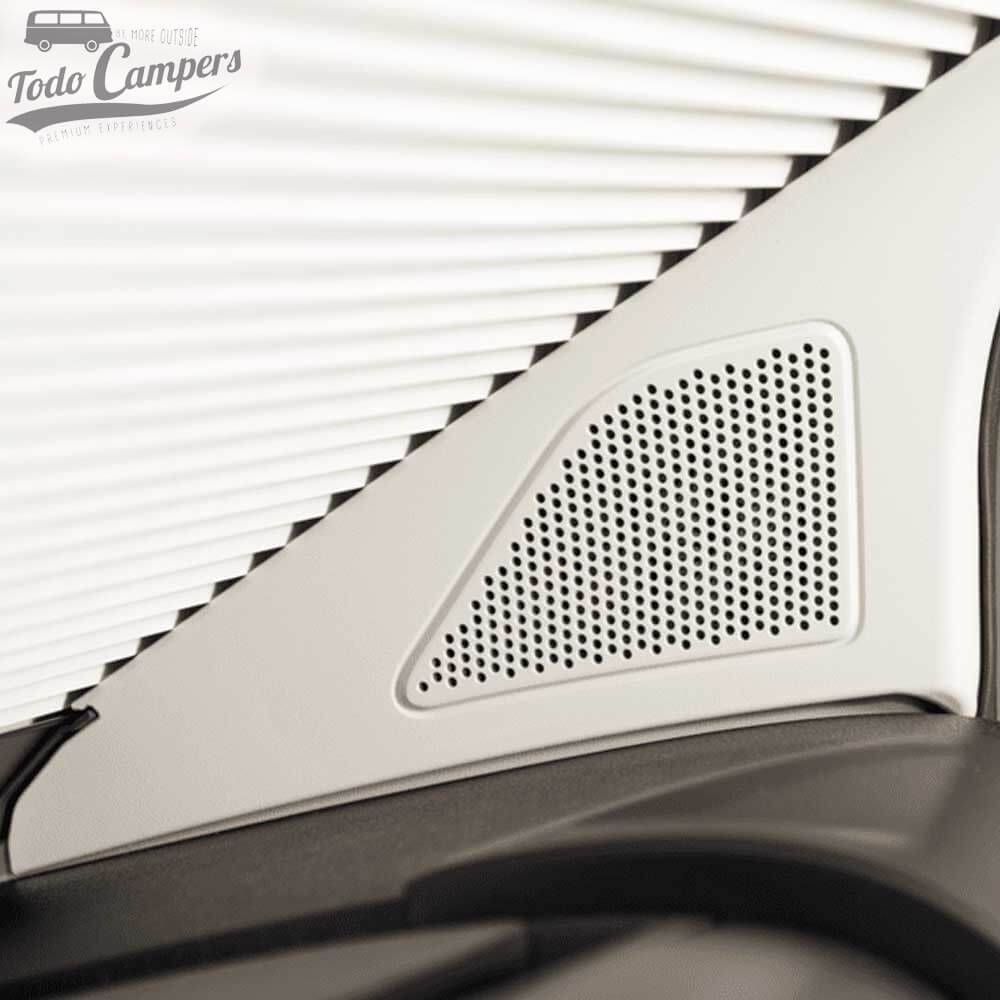 - As molduras laterais estão desenhadas com espaços para os altifalantes da carrinha.