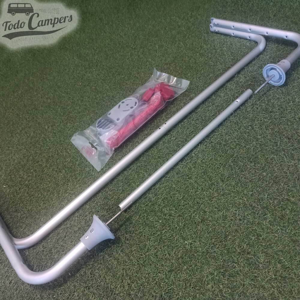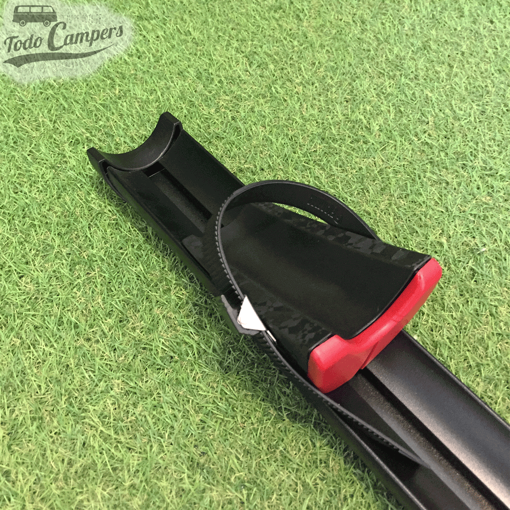 O novo sistema traz uns agarres superiores que se prendem aos pontos de reforço do portão traseiro. Pelo lado inferior conta com uma barra que se fixa ao contorno inferior do portão. Desta maneira conseguimos um ajuste perfeito sem necessidade de perfurar o veículo. Incorpora todos os acessórios e ferragens necessários para se instalar facilmente.