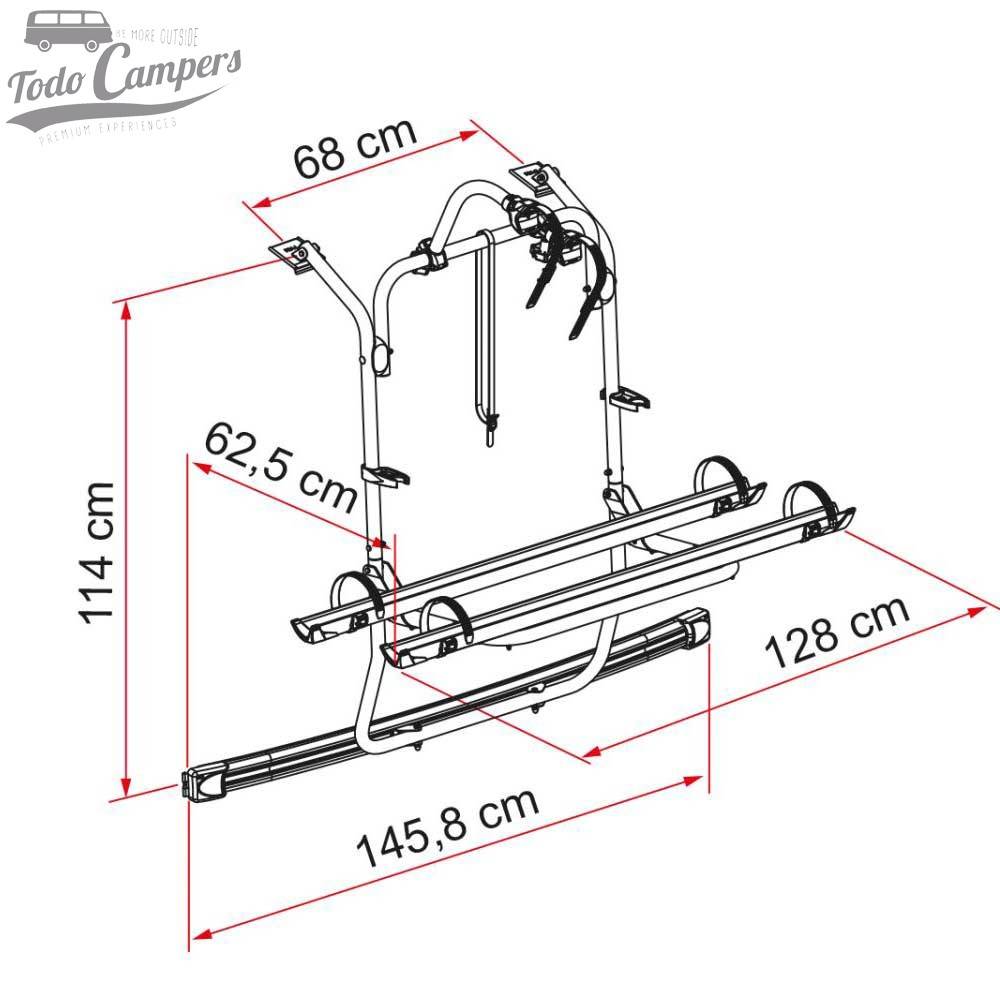 • Transporta 2 bicicletas standard ampliável a 4 com acessórios adicionais.