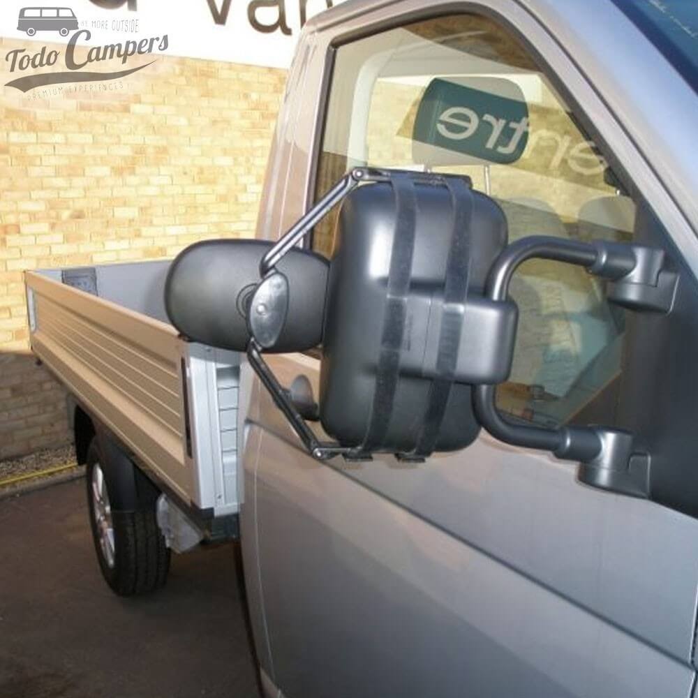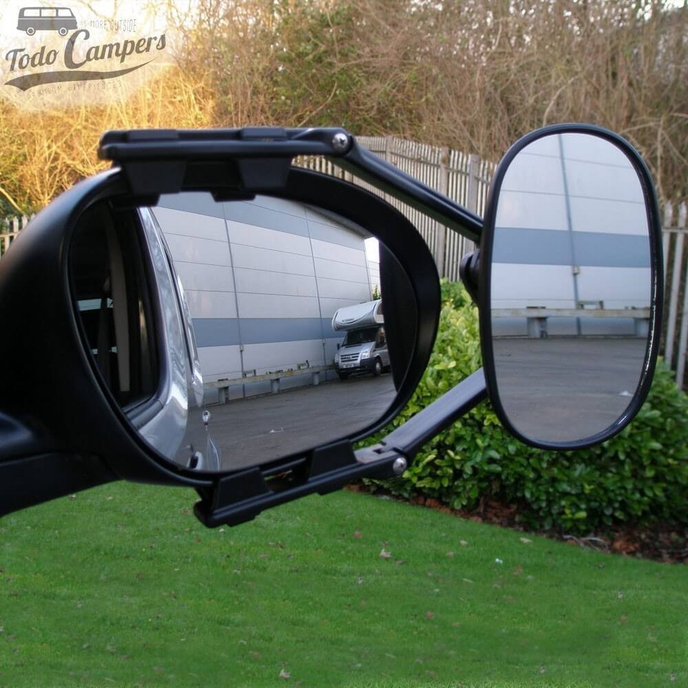 Se vai transportar um reboque ou caravana cuja largura é maior que a do seu carro: vai precisar de espelhos retrovisores para reboque adicionais. Com estes, estará em conformidade com as regulamentações em vigor e poderá ver os pontos cegos gerados pela carga.