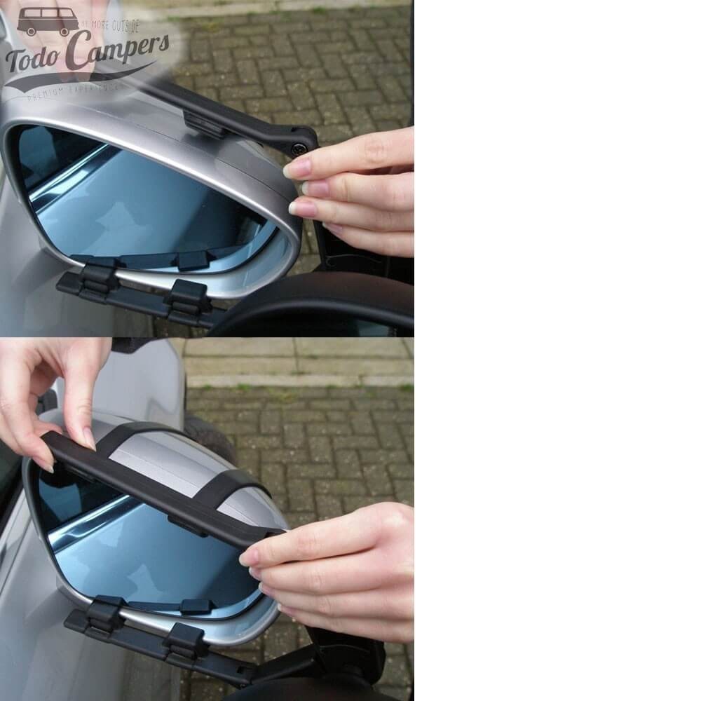 Si vas a transportar un remolque o caravana cuyo ancho es mayor que el ancho de tu coche: necesitarás unos espejos retrovisores de remolque adicionales. Con ellos cumplirás la normativa vigente y podrás ver los ángulos muertos que la carga genera.