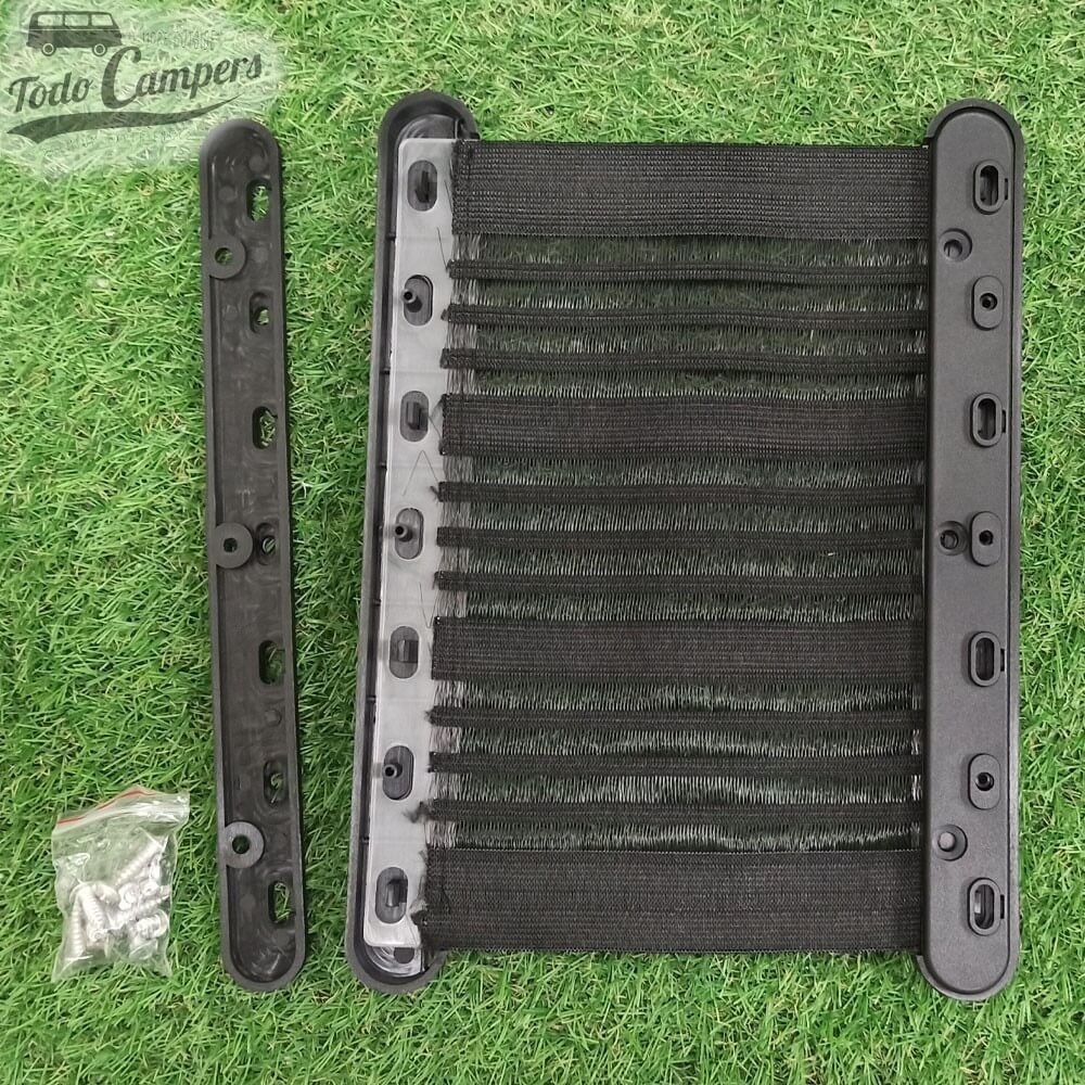 Está feita de um material elástico e muito duradouro. Não tem a típica forma de rede, mas está formada por tiras longitudinais, sem espaços por onde possa cair o seu conteúdo.