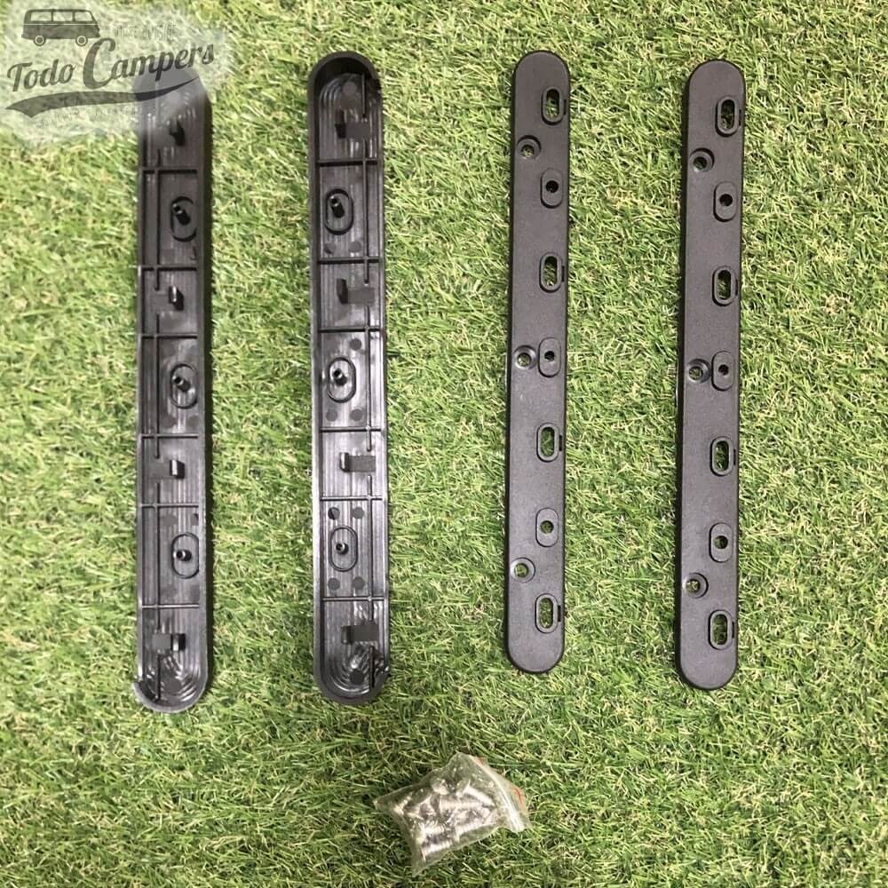 - Instalar as duas peças da moldura com orifícios, aparafusando-as à distância adequada.