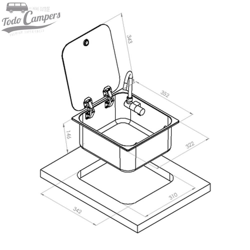 Com este lava-louças, poderá aproveitar ao máximo o espaço da sua carrinha. Os tampos de vidro de segurança permitem que ao estar fechados possa trabalhar sobre eles ou apoiar objetos. O mais importante numa campervan é ganhar espaço e com este lava-loiças vai conseguir.