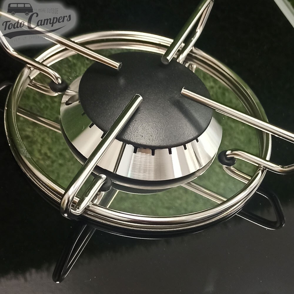 Se está a transformar a sua carrinha, irá gostar deste fogão a gás de um só fogo. É dos mais pequenos do mercado, medindo apenas 29 x 32,6 cm. Nele poderá usar todo o tipo de frigideiras e tachos.