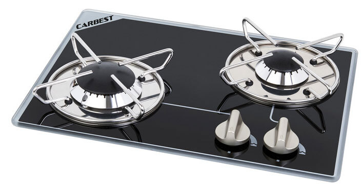 Fogão de gás de vidro encastrável Carbest - 2 bicos (Horizontal)