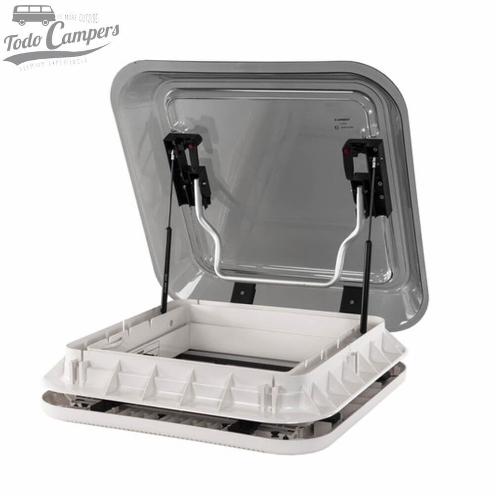 Esta claraboia da Carbest sem ventilação forçada tem dimensões de 45 x 40, perfeita para campervans. Está pensada para espessuras de teto de 25 a 60 mm. Inclui as ferragens específico para essa instalação. Também está disponível num tamanho maior de 70 x 50 cm.