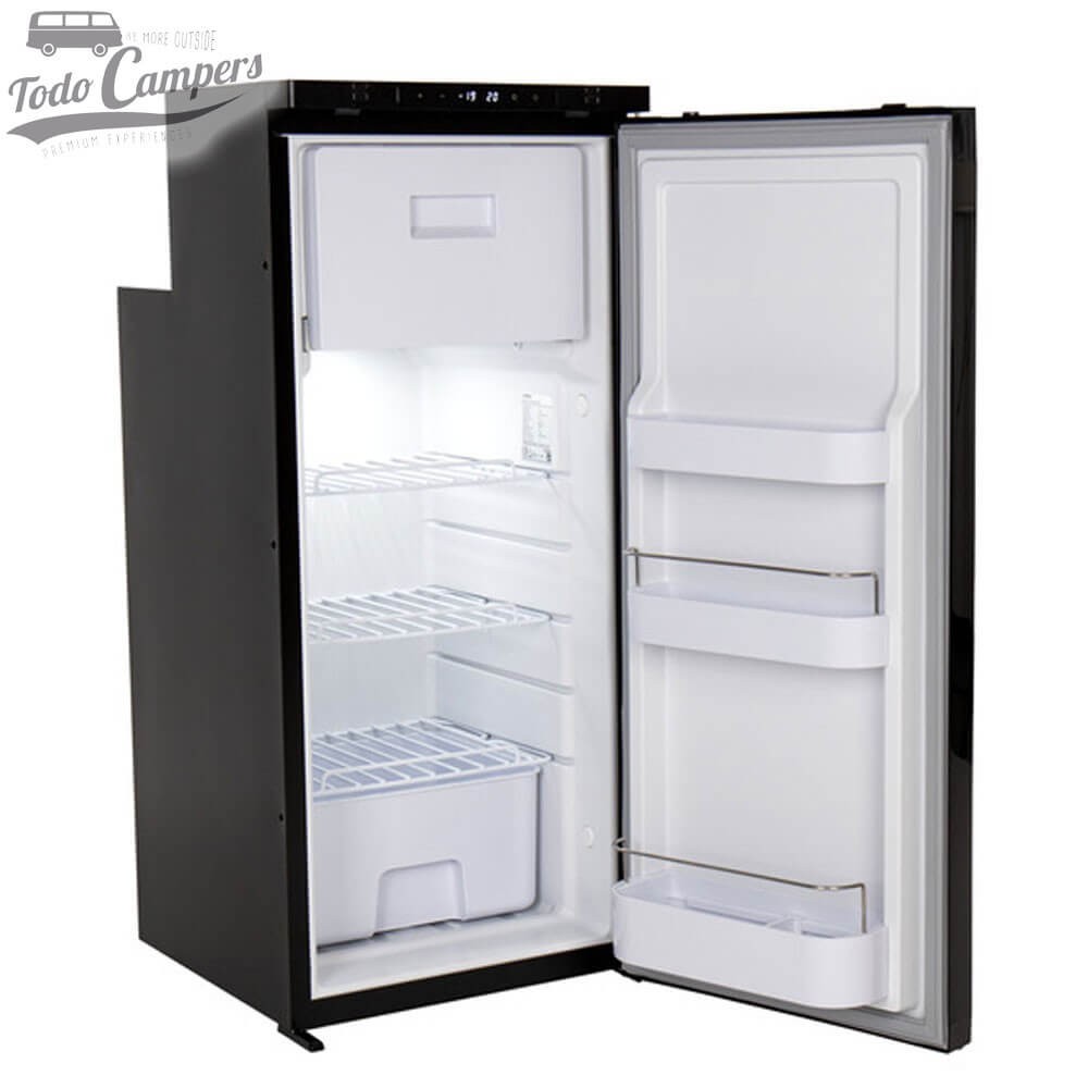 Frigorífico com compressor de 91,4 litros para caravanas, autocaravanas, embarcações ou camiões, pois funciona tanto a 12 V como a 24 V.