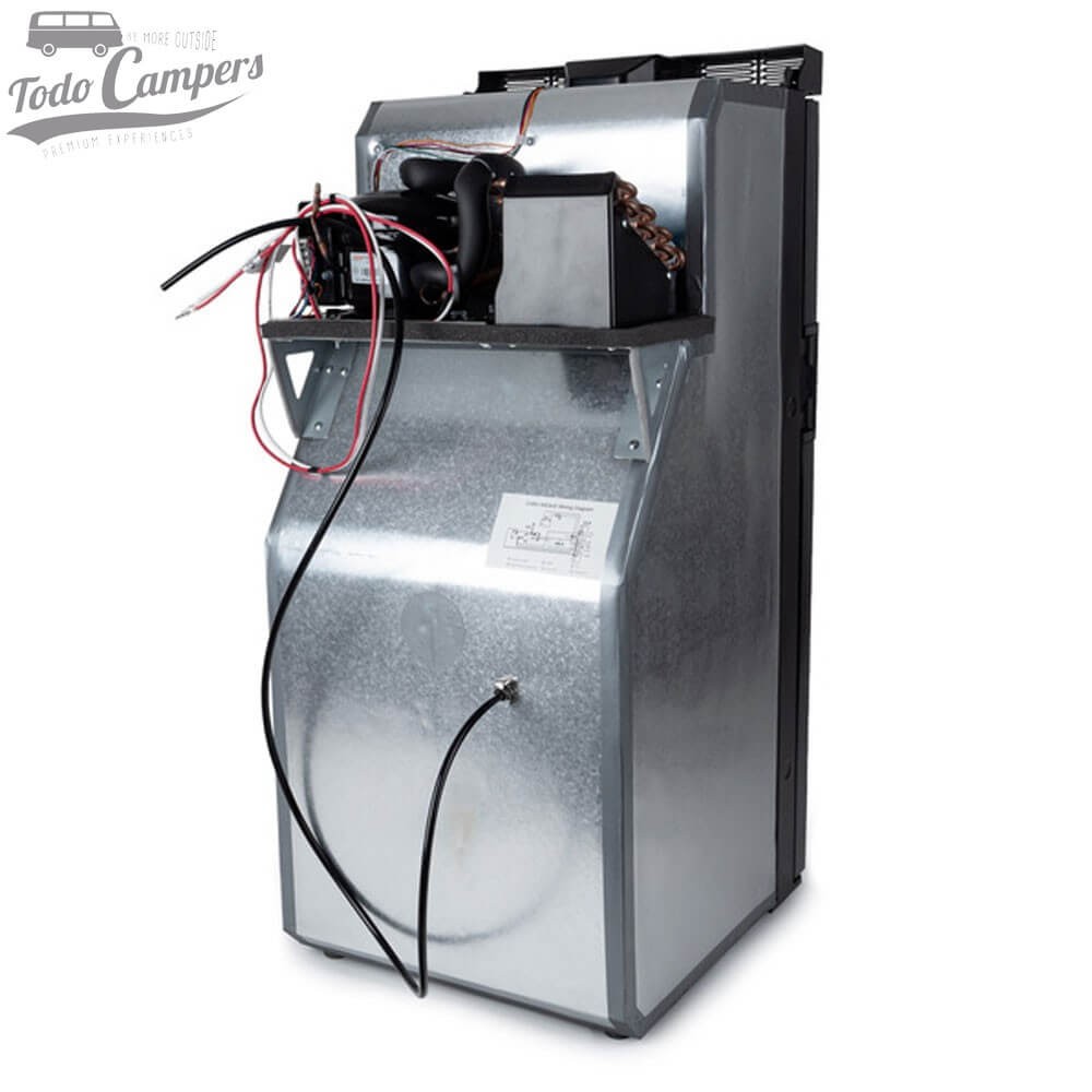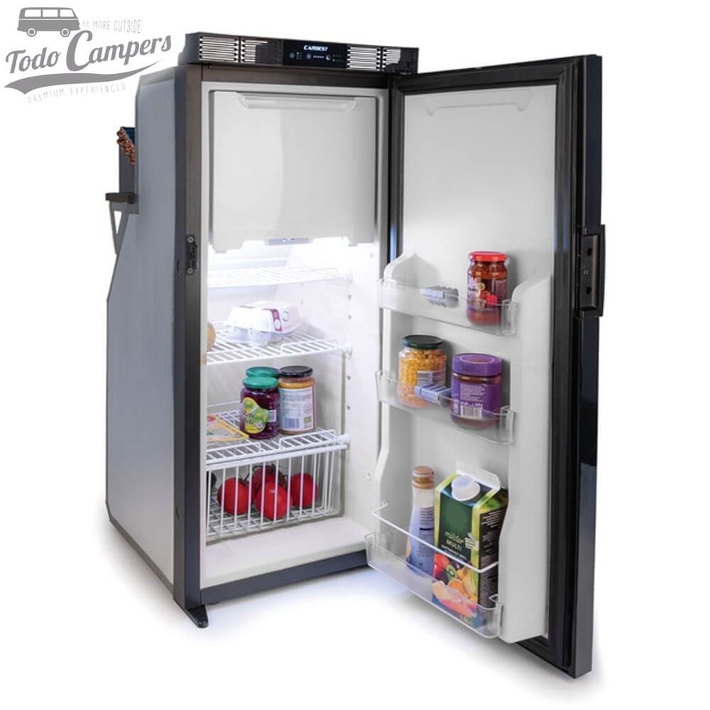 Frigorífico com compressor de 87 litros para caravanas, autocaravanas, embarcações e até mesmo residências, já que funciona com voltagem de 12 V. Pode suportar uma inclinação de curta duração de até 30º, sendo muito utilizado em barcos e veículos.