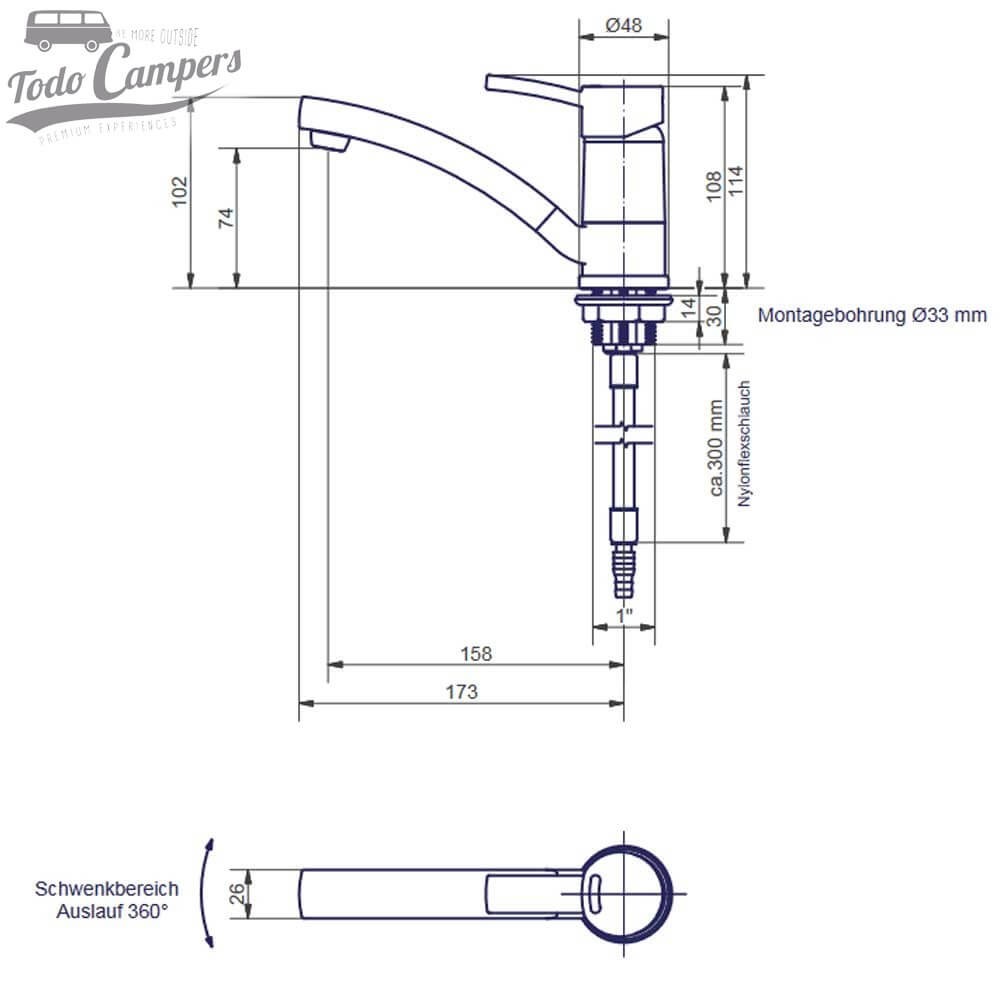 Ao instalar, lembre-se de que deve ser em bancadas com espessura máxima de 35 mm para que possa ajustar bem a rosca e as juntas de borracha. Em seguida, basta conectar as mangas flexíveis de 30 cm às suas mangueiras de água sem dificuldade.