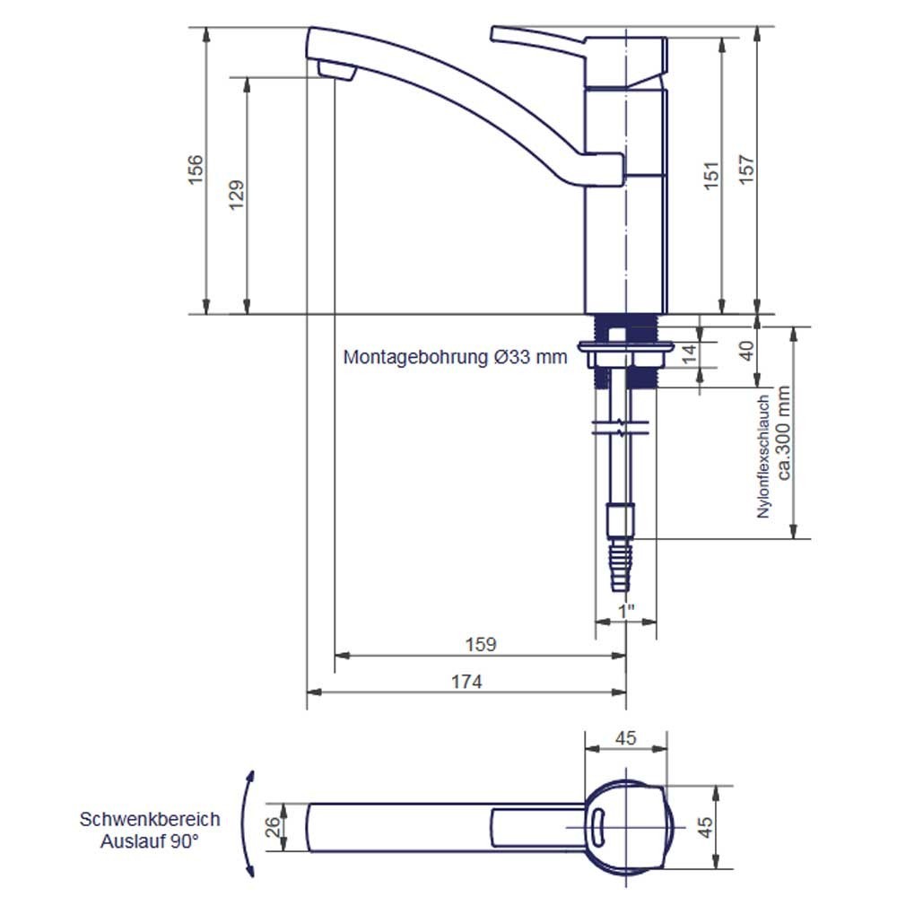 Ao instalar, lembre-se de que deve ser em bancadas com espessura máxima de 35 mm para que possa ajustar bem a rosca e as juntas de borracha. Em seguida, basta conectar as mangas flexíveis de 30 cm às suas mangueiras de água sem dificuldade.