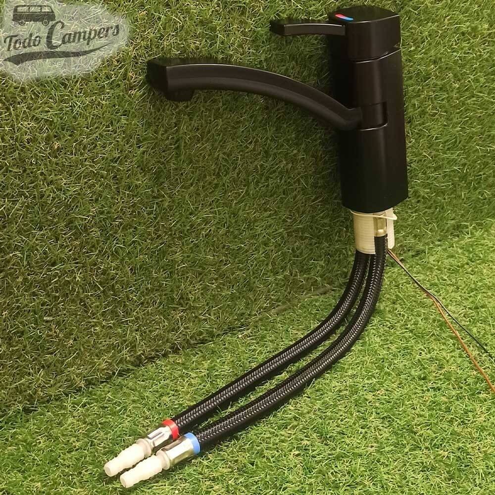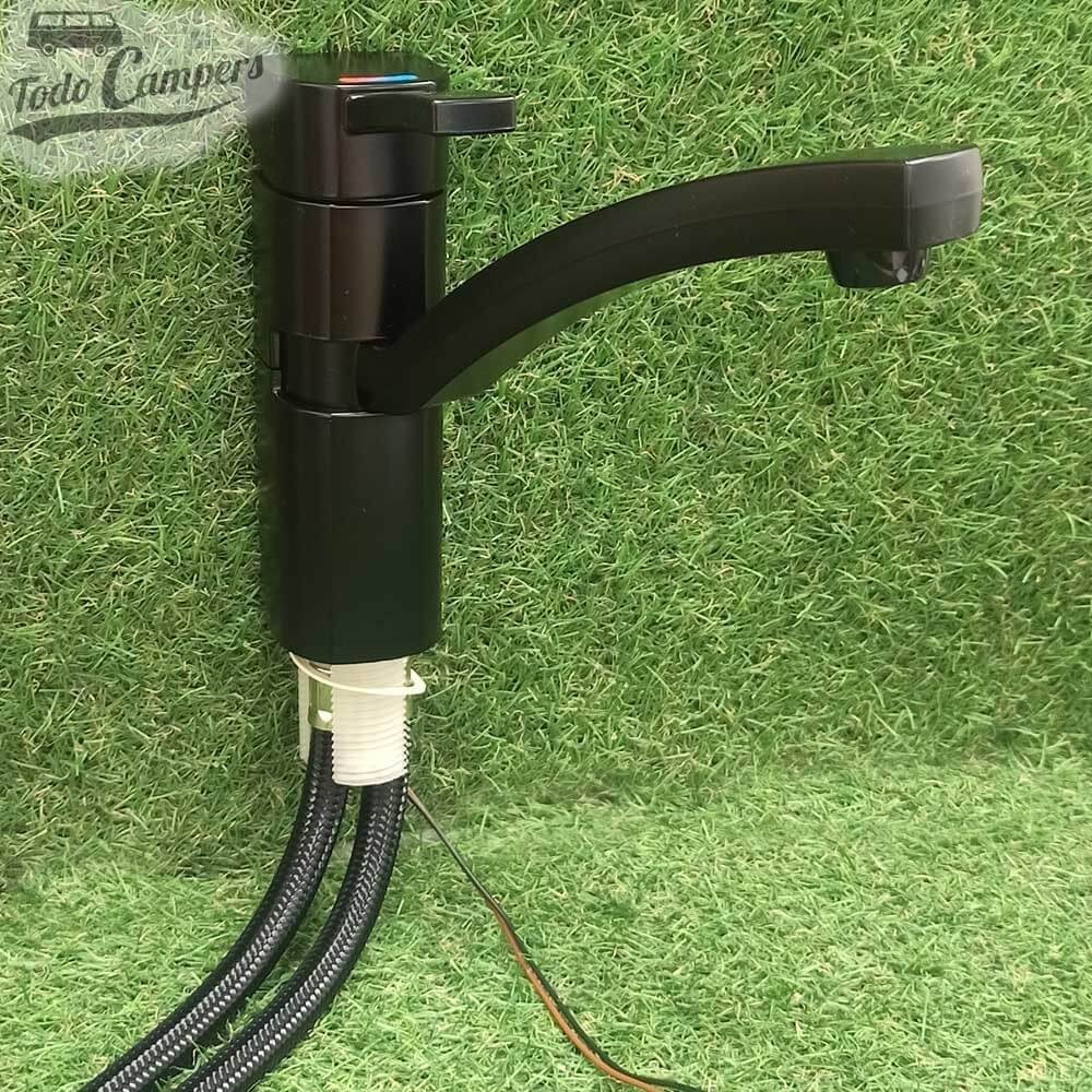 A torneira Capri tem um microinterruptor automático que detecta quando se abre a torneira e ativa a bomba de água. Trabalha a 12 V e funciona tanto com bombas de pressão, como para bombas submersíveis de até 3 bar. Esta torneira é específica para água fria e quente.