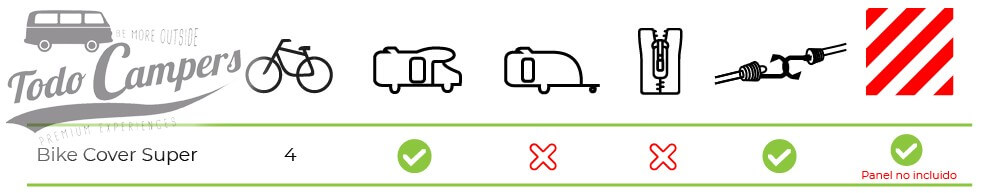 A Fiamma Bike Cover Super é uma capa protetora desenhada para cobrir até 4 bicicletas enquanto as leva colocadas no suporte.